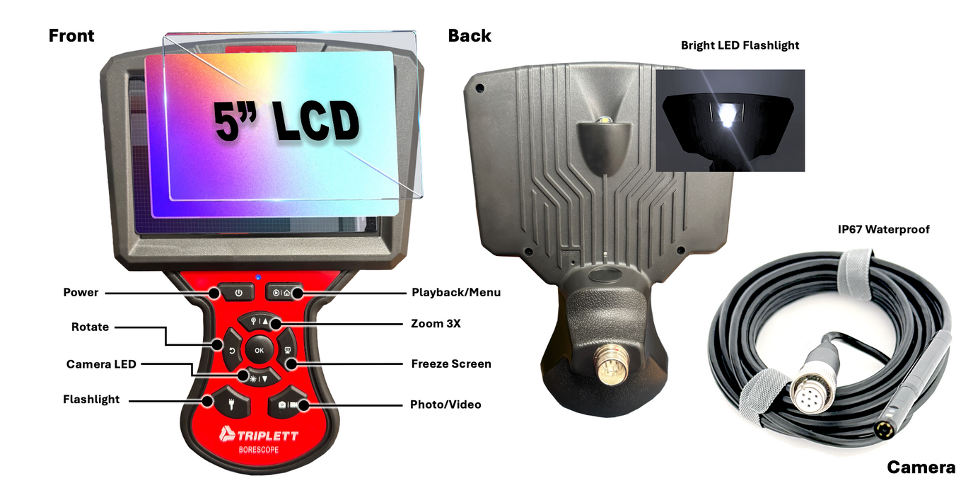 High Definition Borescope Inspection Camera (Dual Camera), 5mm, 5M Cable- (BR350)