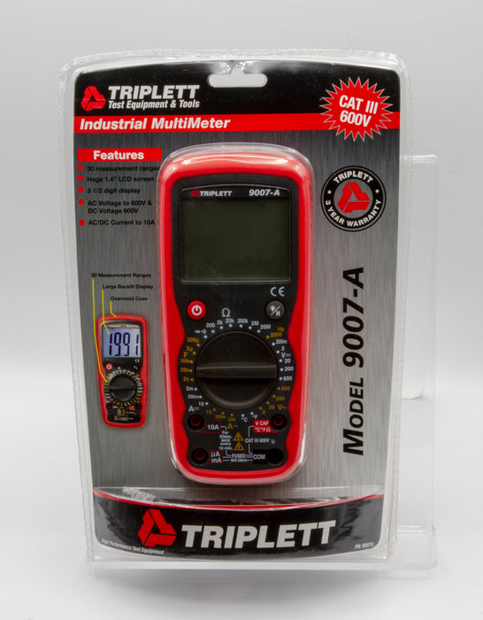 3 ½ Digit 2,000 Count Industrial Digital Multimeter: CAT III 600V - (9007A)