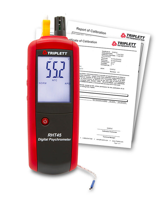 Triplett Test Equipment & ToolsIn stockThe Triplett Model RHT05 Hygro-Thermometer Pen measures Air Temperature, Relative Humidity, Wet Bulb, and Dew Point and is ideal for field applicat...