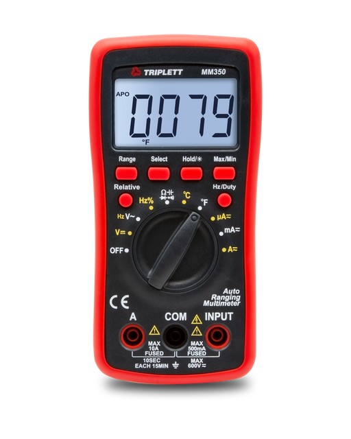 TriplettIn stockThe Triplett Model MM350 True RMS Auto-Ranging Digital Multimeter measures AC/DC Voltage and Current, AC/DC µA Current, Resistance, Temperature, Ca...